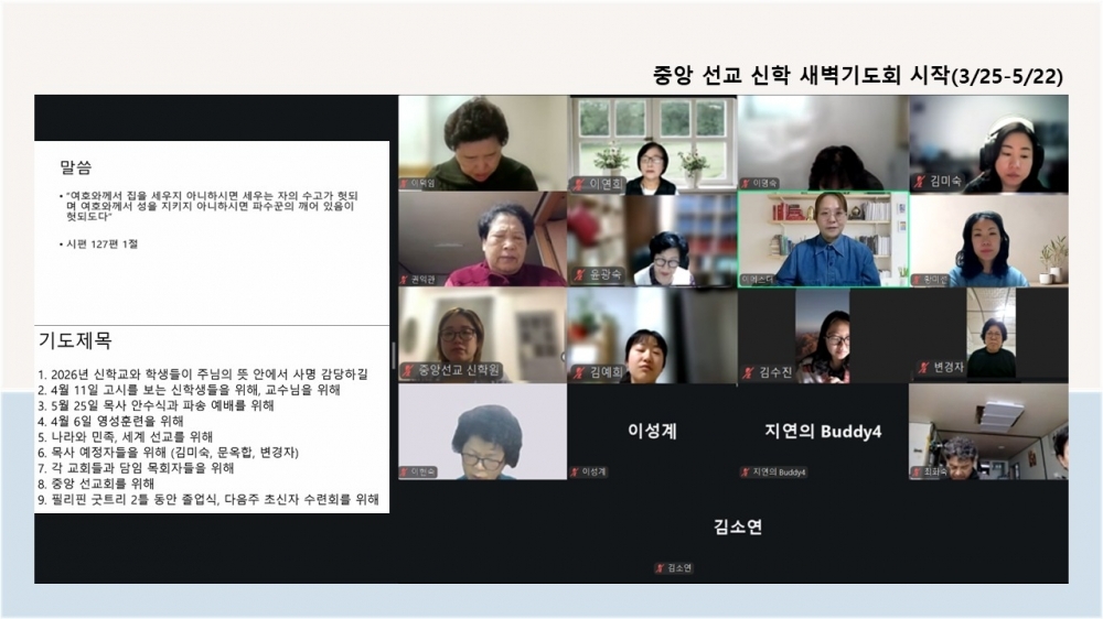 일시: 3월 25일(수) - 5월 22일(금) 토.주일.공휴일.영성훈련 제외