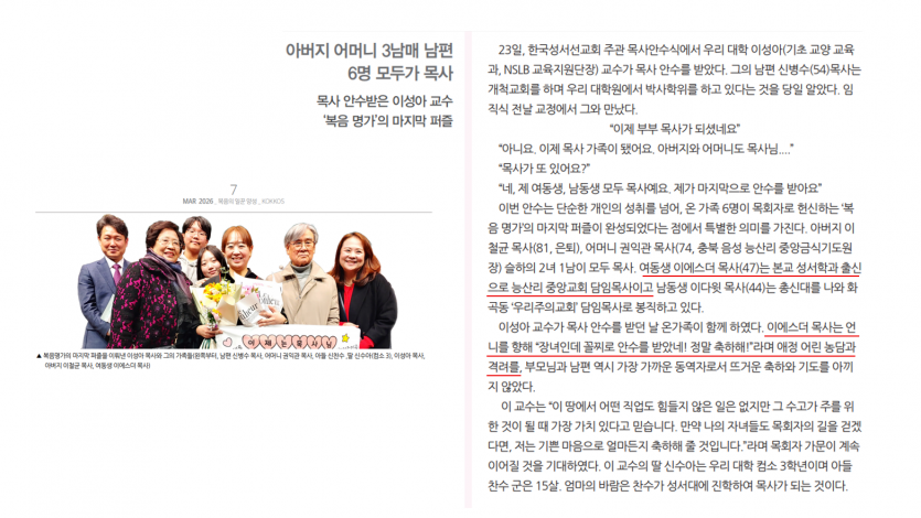 칼럼- '복음 명가'의 마지막 퍼즐(학장님 가족 소개)