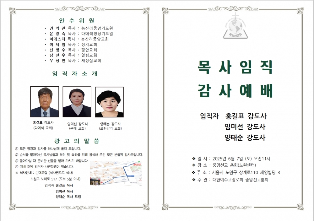 임직자: 홍길표 강도사, 임미선 강도사, 양태순 강도사