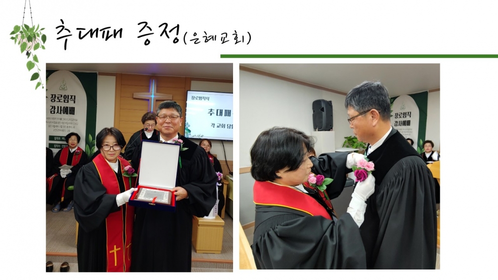 하나님의 크신 은혜 가운데 장로 임직 감사예배를 드리게 하심에 감사드립니다.주님의 몸 된 교회를 사랑하는 마음으로 부르심에 순종하여 헌신을 다짐한