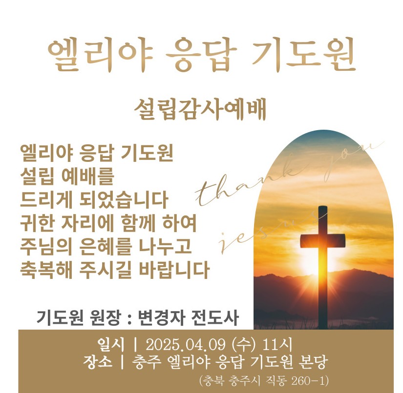 [엘리야 응답 기도원] 설립 감사 예배 안내